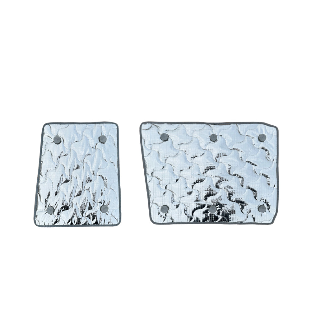 Each shade features a multi-layer reflective material that deflects sunlight and insulates against heat, while built-in suction cups make fitting and removal quick and effortless. They hold firm to the glass and pack away flat when not in use.